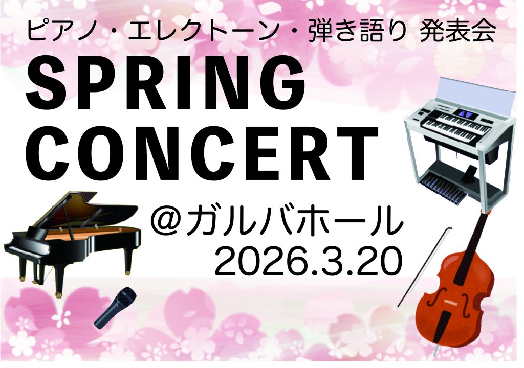 春に開催するピアノ・エレクトーン・弾き語りのアコースティックな発表会のお知らせです。