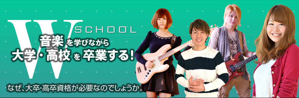 音楽を毎日学び、大学や高校も卒業します。アーティストデビュー、プロミュージシャンを本格的に目指しながら大学卒業資格が欲しい、高校卒業資格が欲しいという方のWスクールコースです。